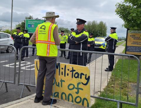 At Shannon today the Gardai were asked to search and investigate a US Air Force Boeing C40 registration 02-0042 that was at Shannon Airport, having come from Tel Aviv in Israel. The request was made of the Inspector in Charge at the barricades that blocked our access to the airport, and it was made on the basis that the US is assisting Israel with genocide against the Palestinian people. The inspector said he acknowledged the request, but did not say whether the aircraft would be searched or investigated.